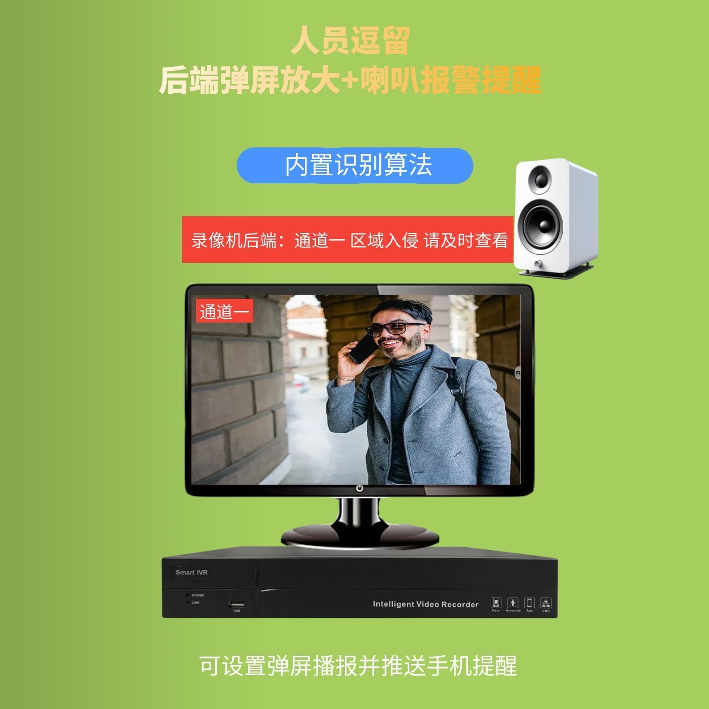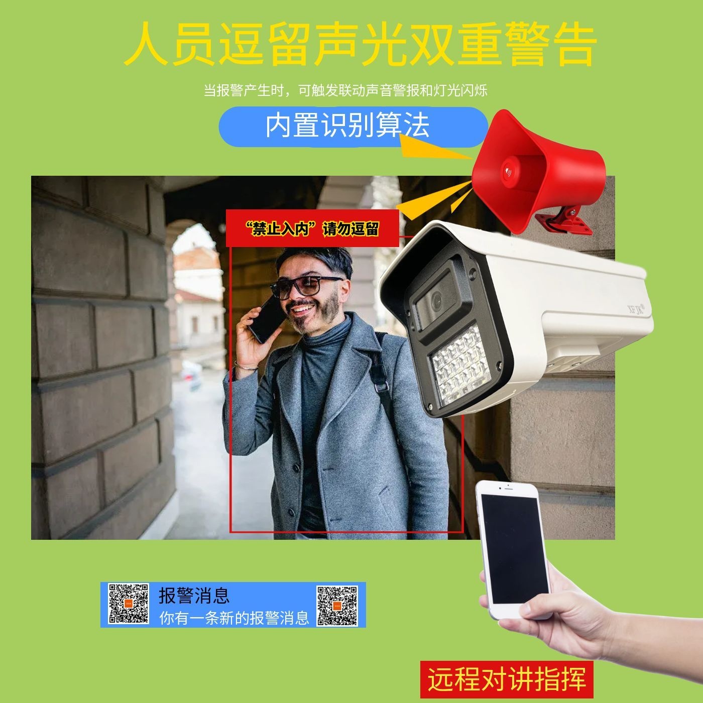 4G人员逗留监控人员徘徊滞留不离开后端前面报警喇叭远程摄像头